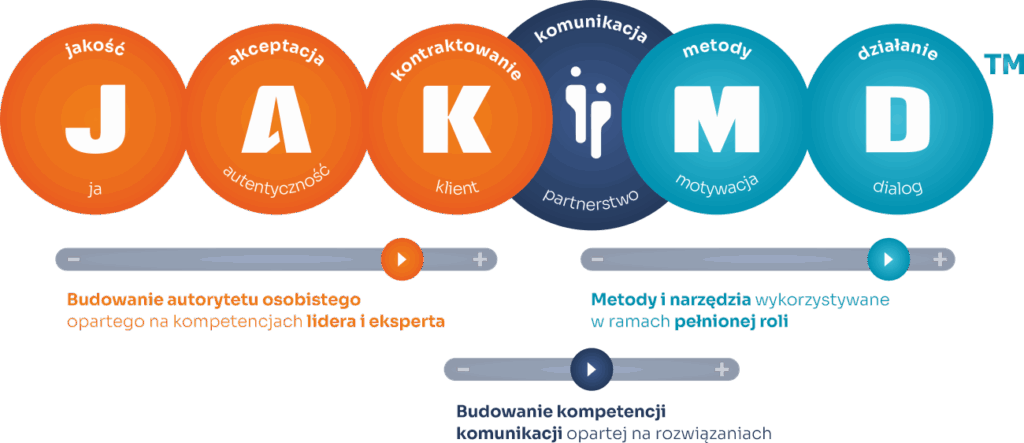 W pracy doradczej, szkoleniowej i coachingowej korzystamy z autorskiego modelu JAK–MD, który stanowi ramę rozwoju ludzi w rolach liderskich, eksperckich i wspierających.